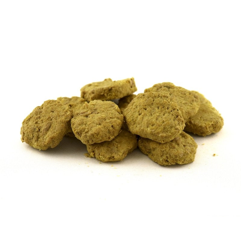 どのフードもこれまでバクバク食べてくれる子ですが、なかでも一番の食いつきでした。かたさも丁度良い。望むなら一個の大きさが半分くらいになればと思いました。とにかく勢いよく食べてしまい、つまりそうになる時があるもので。