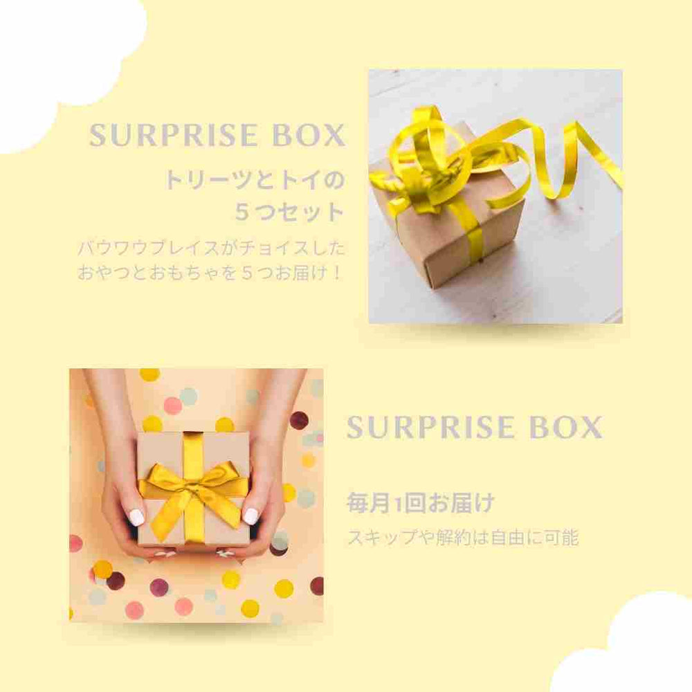 バウワウプレイスが毎月選んだ、トリーツとトイの組み合わせ5つセットです。