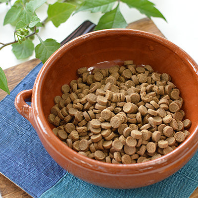 に変更したところ、以前よりご飯が待ち切れない様子で足にタックルしてきたり、催促吠えが大変です。サプリもお皿の底に溜まっていると、ずっと綺麗になるまで舐めています。